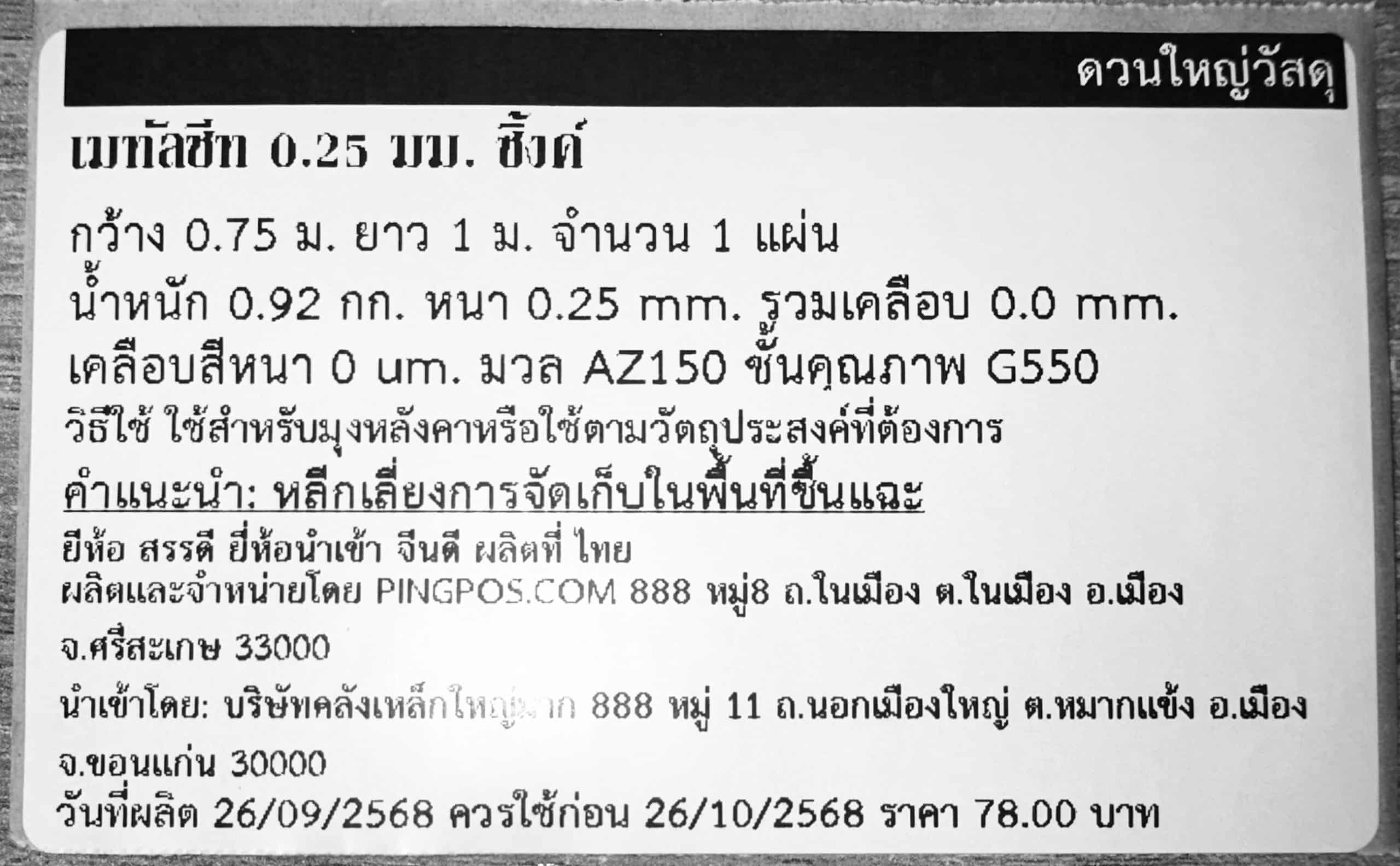 ฉลากสินค้า สำหรับโรงงานเมทัลชีทตามกฎหมาย สคบ. ใหม่