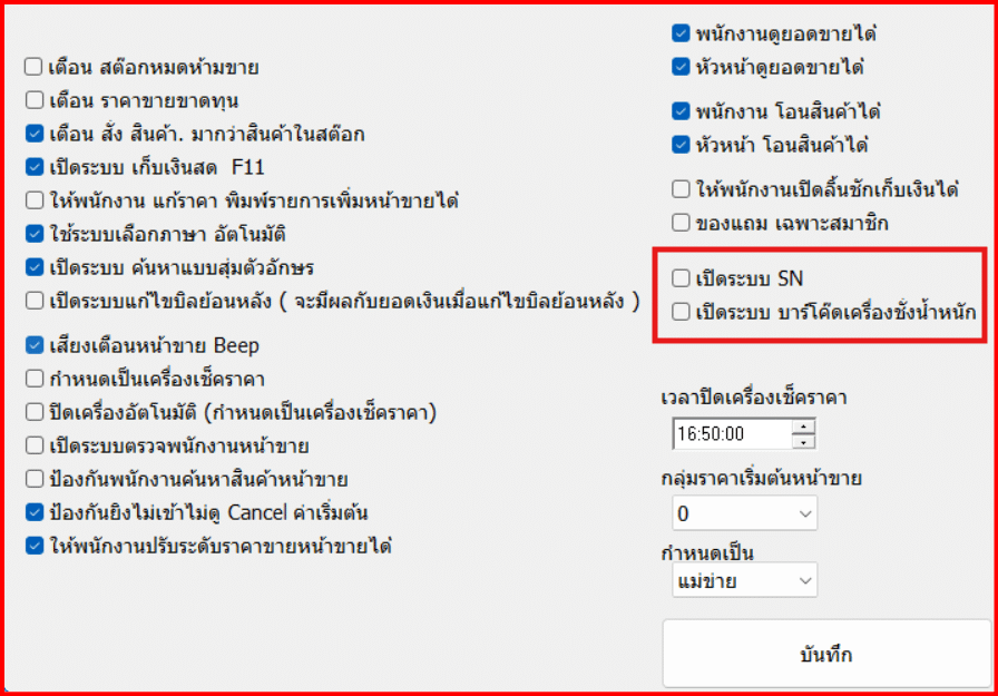 เปิดปิดระบบ ขาย Serial และ ระะขายถอดบาร์โค้ด เครื่องชั่งน้ำหนัก b.8182
