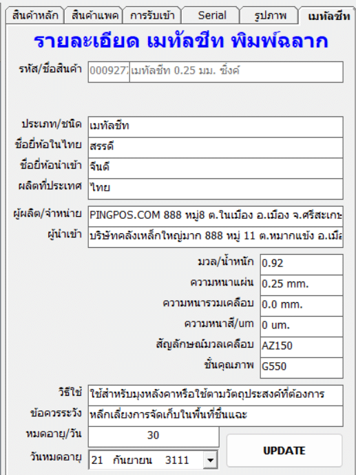 - ปรับปรุง สีวันทีอัปเดตในหน้าข้อมูลสินค้า