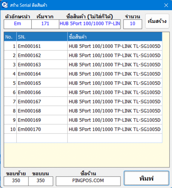ชื่อสินค้าจะไม่ถูกจัดเก็บ จะพิมพ์ออกตอนที่สร้างเท่านั้น ใส่ชื่อหรือไม่ใส่ก็ได้